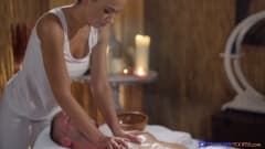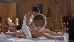 Shalina Devine é a mestre das massagens eróticas. O cara só vai sair do salão depois de um boquete, um footjob, um 69 e uma gozada dentro dela!