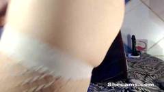 A morena conversou com seus fãs, tirou o pau para fora da calcinha fio dental, se acariciou e acabou se masturbando de tão excitada que estava.