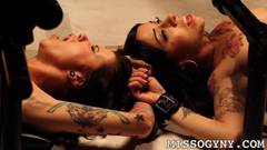 Elas foram amarradas e imobilizadas com correias de submissão. Uma ruiva pervertida aproveita a oportunidade para fazê-las sofrer, castigando-as!