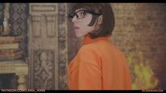 Essa garota safada se disfarçou de Velma, a famosa investigadora da série Scooby-Doo, para colocar um plug anal e um vibrador na sua buceta