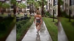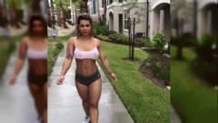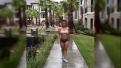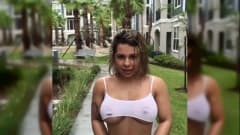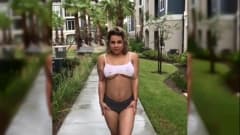 Esta boazona atlética com mamas grandes vai fazer uma exposição ao ar livre, ela vai flashar mamas e tetas e você vai adorar vê-la!
