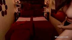 A estrela pornô trans Nikita Dragun gosta de apertar seu pênis na webcam e serrá-lo com paixão!