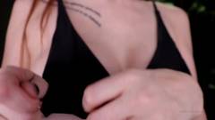 Essa ruiva é uma boazona e ela sabe disso. Ela se pavoneia nos mostrando seus biquínis, mas tudo o que ela quer fazer é nos mostrar seus peitos