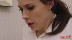 Sexo anal missionário e estilo cãozinho no banheiro, entre Chanel Preston e James Deen. A morena adora levar no seu buraco do cu dilatado