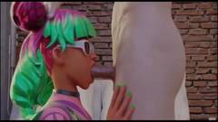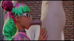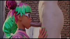 Hentai de bunda grande com as três garotas do Fortnite, Skye no estilo cachorrinho, Crystal cavalgando e Tropical chupando um pau grande.