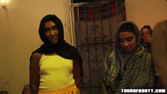 Soldados americanos vão a um bordel para fazer sexo com três belas árabes e transar com elas usando hijab.
