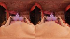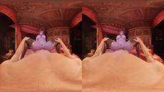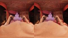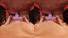 Coloque seus óculos 3D e veja que pau enorme essa puta hentai de peitos grandes está fodendo em um cavaleiro invertido!
