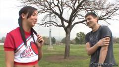 Esta líder de torcida vai ter uma boa sessão de sexo com seu amigo hoje. Penetração profunda e ejaculação facial para esta jovem morena!
