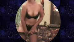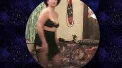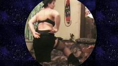 Uma mulher com um chapéu preto fica nua na frente da câmera. Essa garota gorducha de cabelo curto tem peitos incríveis!