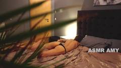 Essa garota excitada, com uma bunda sexy, deita-se na cama e masturba sensualmente sua buceta sem nem mesmo tirar a calcinha!