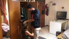 Essa garota está com tesão e quer chupar um pau! Hoje ela está até vendada enquanto fode!