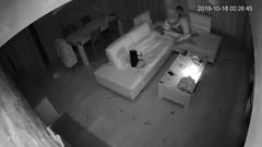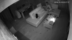 Esse casal está tão empolgado que se esquecem da câmera de vigilância. Eles rapidamente fodem no sofá com muita intensidade.
