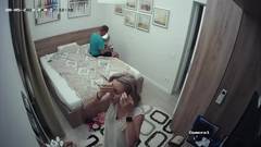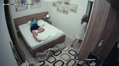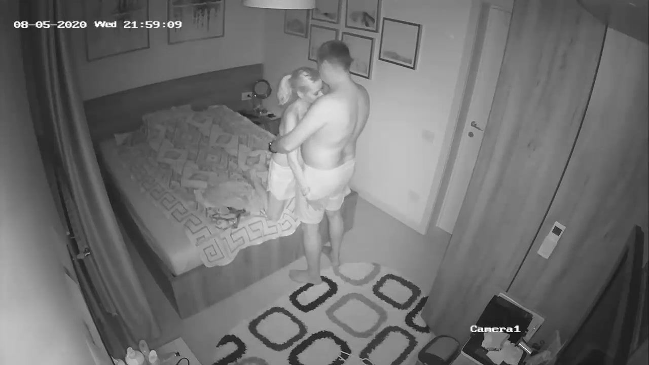Esse casal está tão animado que vão para um quarto alugado para foder como animais. A câmera de vigilância não perde uma batida.