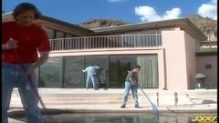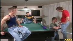 Trace Henson, Luc Jarret, Robert Black e Tristant Paris farão boquetes uns nos outros enquanto trocam de parceiros na mesa de sinuca.