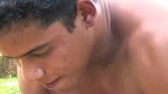 Esses homens latinos estão excitados e prontos para se divertirem fora, no meio da selva, até que cospem sue jato de porra