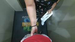 Esse casal se filma em POV fodendo no elevador de um shopping. No final ela se vira para receber a gozada na boca!