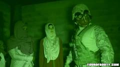 Militares americanos se divertem com prostitutas muçulmanas durante uma missão, eles chupam e fodem para conseguir seu facial.