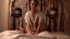 Ela o fará relaxar nessa cena fabulosa! Ela usará óleo para massagear o corpo e o pênis dele!