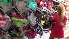 Alura Jenson experimenta lingerie em um provador. Ela vê um voyeur e lhe mostra tudo. Ele a seduz e transa com ela.