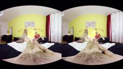 Essas duas garotas louras decidiram compartilhar o pinto desse cara e fazer um vídeo VR, então pegue seus óculos de realidade virtual e aproveite a cena.