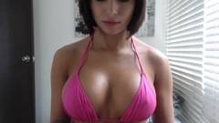 Uma morena super sexy com grandes conchas, se despe e se acaricia em frente à webcam para nos excitar! Imperdível esta safada gostosa!