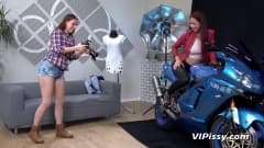 Este casal de lésbicas adora sentir o mijo uma da outra em seus corpos, sentindo muito tesão e transando ao lado de sua motocicleta