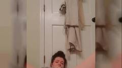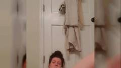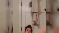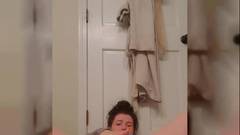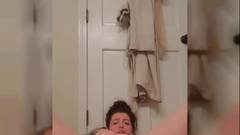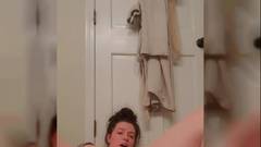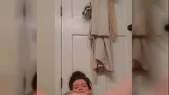 Essa morena fofa está feliz por estar esfregando sua buceta e se masturbando até estar pronta para o clímax e alcançar seu orgasmo na casa de banho