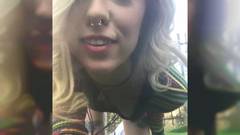 Ela está curtindo seu tempo no parque enquanto se masturba e abre o buraco da buceta e empurra o cu para fora
