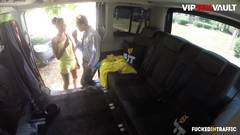 A jovem puta preta Carol Marf deixa um cara branco foder ela numa grande van. George Uhl maduro fode ela extremamente