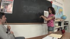 Estamos na sala de aula, enquanto uma estudante realmente muito sexy começa tomando um exame e acaba tomando pau na buceta...