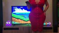 Uma puta gorda e excitada o fode na sala de estar! Não vamos ver seu rosto, mas podemos admirar suas curvas grandes e quentes!