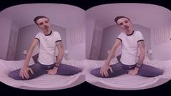 Esse vídeo de RV é um dos que gostamos, com um cara gay que está excitado e se masturbando com seu pau duro na frente da câmera.