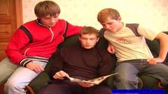 Três garotos olham para uma revista pornográfica e se despem com entusiasmo para beijar, chupar pintos e finalmente foder o traseiro muito fundo,veja!