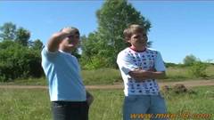 Estes gays aproveitam seu tempo juntos lá fora enquanto fodem, chupam pintos e masturbam um pau duro