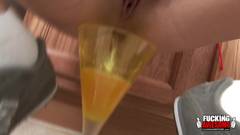 Hannah West faz um milkshake para si mesma, despeja-o em sua buceta e bebe-o porque é uma vadia excitada.