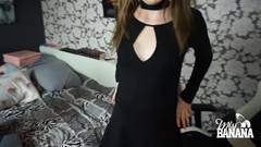 Miss Banana pode sempre escolher entre uma rola e um pirulito, mas o pirulito não gozaria na cara dela e ela adora gosto de porra!