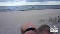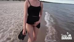 Miss Banana chupa um pau e recebe um tratamento facial, enquanto está na praia! Garota safada!