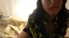 Cena extremamente sexy com a morena Octavia May. A safada vadia coloca um arnês preto e se empanturra com um vibrador enquanto sonha com um amante sexy