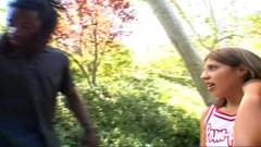 Uma líder de torcida se encontra na floresta com seu treinador, que não consegue resistir à sua bela bunda. Veja como ela se diverte com o pau desse negro.