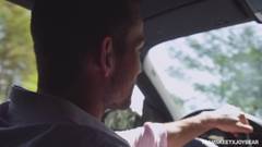 Depois de dirigir por um tempo, ele leva a bela morena Julia de Lucia para uma toalha de mesa no meio da floresta e rasga a buceta dela com seu pau em pé.