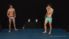 Enquanto lutam, os dois jovens exercem posições sexuais que ambos gostariam de assumir após a luta para se dar muito prazer