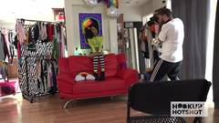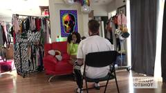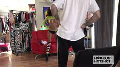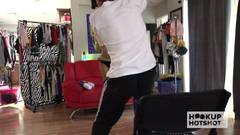 A bela jovem mestiça fará uma sessão de fotos e experimentará algumas roupas, pois seus seios são impressionantes.