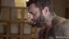 O sexy mestiço Trent fica excitado ao ver o musculoso Markus Kage nu no chuveiro. Ele recebe uma boa chupada e depois enfia o pau na boca.