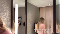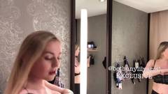 A sexy e loira estrela pornô Beth Lily, está no provador medindo sutiãs em seus belos peitos!