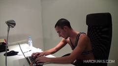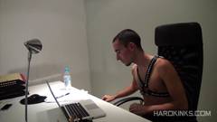 O jovem gay gosta de sexo hardcore e é amarrado com cordas enquanto tem seu rabo chicoteado. Ele também caminha sobre quatro pernas como um cão.