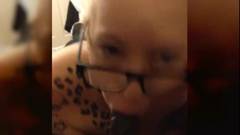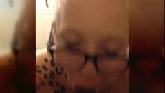 Essa gata de óculos vai sugar o galo preto com muito jeito até fazer lo explodir. Ela não quer engolir porra, por isso acaba o trabalho com punheta.
