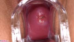 Essa amadora coloca um afastador em sua buceta para nos mostrar o que há lá dentro e aproveita a oportunidade para vibrar seu clitóris.