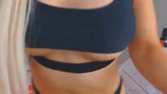 Uma loira muito bonita em roupa íntima esportiva sexy adora foder e por falta de um pinto se masturba intensamente com a ajuda de brinquedos sexuais.