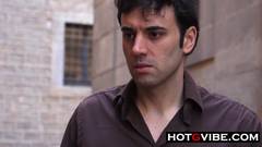 Esse jovem cheio de tesão conhece uma vagabunda morena, também com muito tesão. Eles decidem bater uma punheta juntos em um canto. Muito excitante!