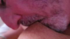 Velhote apaixonado pelos peitos e mamilos da BBW
